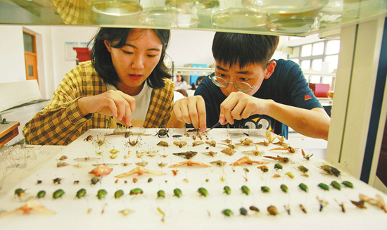 接到任务后,同学们到学校周边的草丛、农民的菜地,以及天目山自然保护区等抓捕各种昆虫。早上起来的第一件事情,就是看看有没有蚊子苍蝇或者蟑螂,这些以往讨厌的虫子,成为同学们特别亲切的“宝贝”。“一只漂亮的蝴蝶或者一只帅气的独角仙,都成了相互炫耀的‘资本’。”不少同学说。