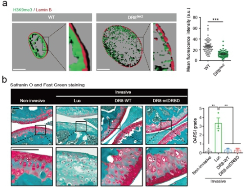 (a)DGCR8参与异染色质结构维持;(b)基于DGCR8过表达的骨关节炎基因治疗