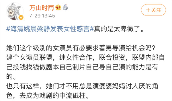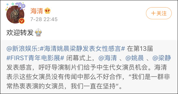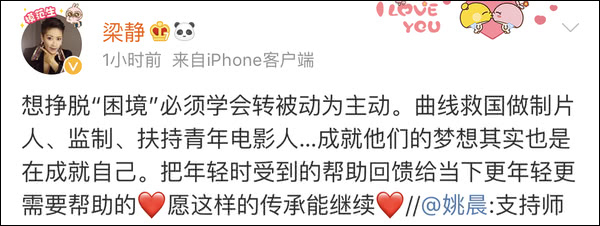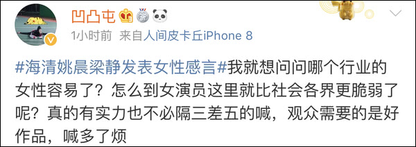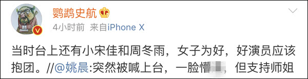 闭幕式后,三人在个人微博上再发言,姚晨也提到类似的职业困境不仅局限于影视圈。