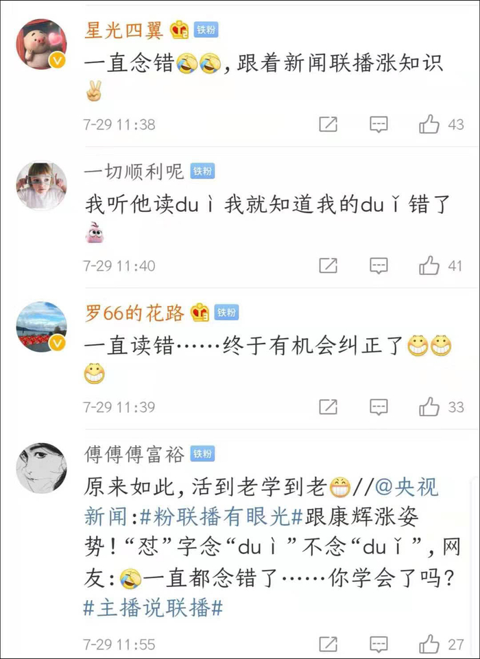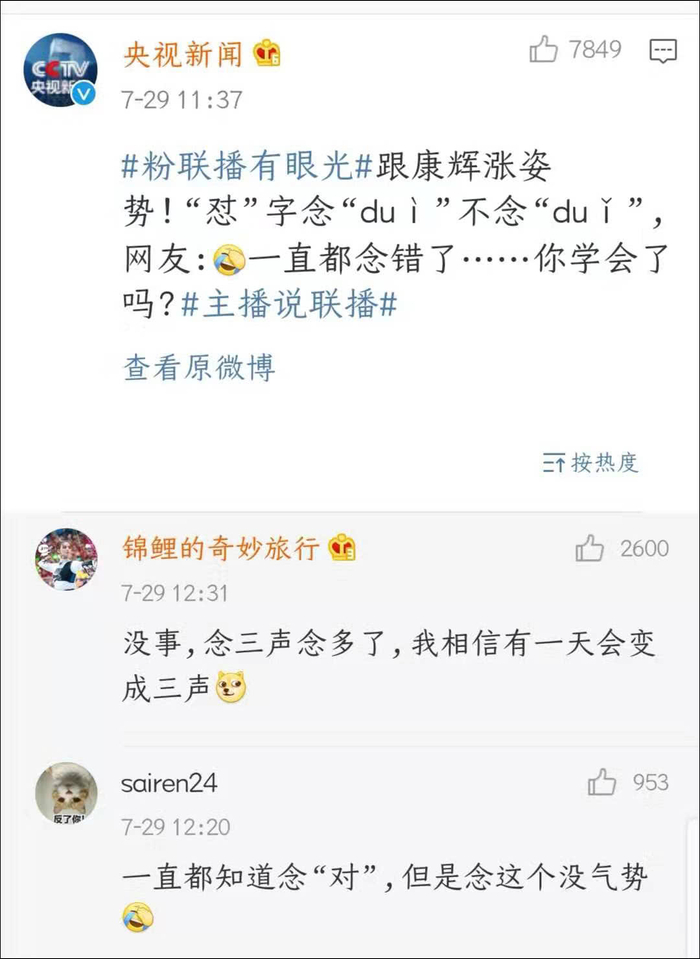 而刚刚,央视新闻官方微博也在评论区做出回应,真的念duì啊,你学会了吗……