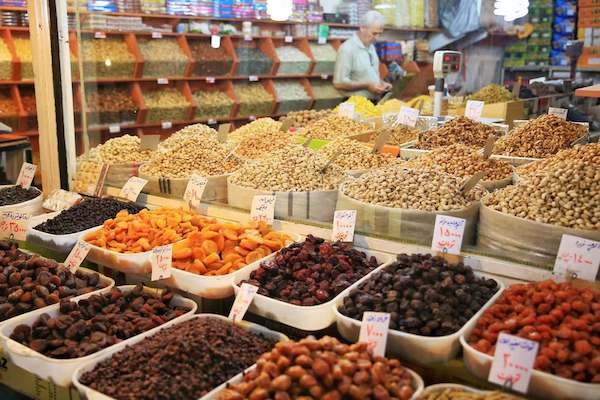 在伊朗旅行的最后几天,斋月的结束让所有城市都恢复了令人惊叹的活力,原本空无一人的街道上变得熙攘热闹,巴扎里的店铺纷纷开张营业,馥郁的香料与香甜的干果摆得满满当当,我也迎来了饮食最丰美的一段时光。