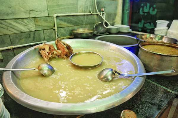 热烘烘的德黑兰夜风将一阵香气吹到了我面前,顺着香味,我在一条僻静的小街找到了这家小店。羊头正在汤煲里炖煮,空洞的眼眶直视着食客,但乳白色的汤汁咕嘟嘟冒着泡,令饱受饥饿与kebab摧残的我无法抗拒。