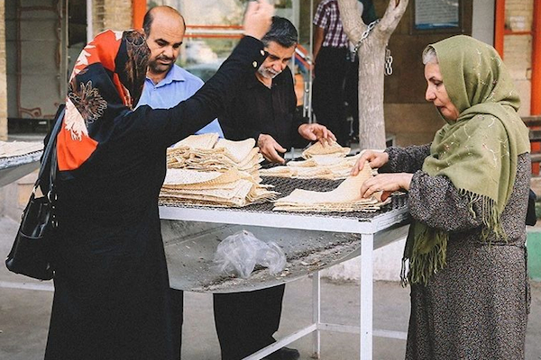 伊朗的饼有很多种类,“馕”这个词即源于波斯语。发酵面饼随着丝路贸易传播,在各地形成了不同的形态,比如伊朗的石子烤馕(sangak)和陕西的石子馍就颇有些相似。