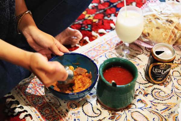 德黑兰的艳阳照耀下,巴扎外的一条长队吸引了我的注意力。人们站在高温下,热切地交谈着,队伍一直从街道延伸到一栋小楼的二楼。我凑过去张望了几眼,二楼是家热闹的餐厅,挤满了欢快的食客,充盈着香甜的食物气息。和伊朗人一样几乎饿了一整个月的我,也立刻加入了排队等待——那时候我都还不知道要吃的是什么呢。