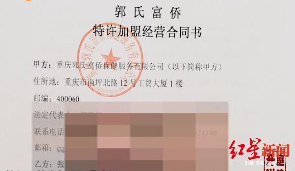据该店老板张女士介绍,他们加盟的是重庆郭氏富侨保健服务有限公司,加盟费为16万元。在签订《特许加盟经营合同书》时,对方还出具了一份盖有印章的《转让协议》。《转让协议》上载明,转让方系重庆富侨保健服务有限公司,受让方为重庆郭氏富侨保健服务有限公司,内容为转让方将其名下所有商标(包括申请过程中的)无偿转让给受让方及其自身永久,两家共同享有所有权。