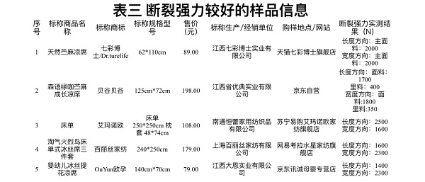 织物凉席比较试验:70件样品41件有问题