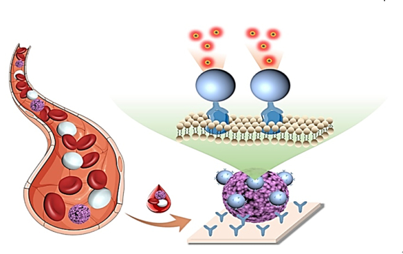 循环肿瘤细胞(circulating tumor cell,CTC)是从肿瘤原发灶或转移灶脱落并游离到外周血中的一类肿瘤细胞,其容易引发肿瘤复发或转移并显著增加肿瘤患者的治疗难度和死亡风险。因此,CTC的有效检测对肿瘤的早期诊断、预后判断以及疗效监控等具有重要意义。然而,由于CTC在血液中含量极低,传统的基于“富集-检测”的两步分析法存在操作繁琐、灵敏度低、易产生假阴性等不足。如何实现全血中CTC的高灵敏直接检测是肿瘤诊疗领域的一个重大挑战。