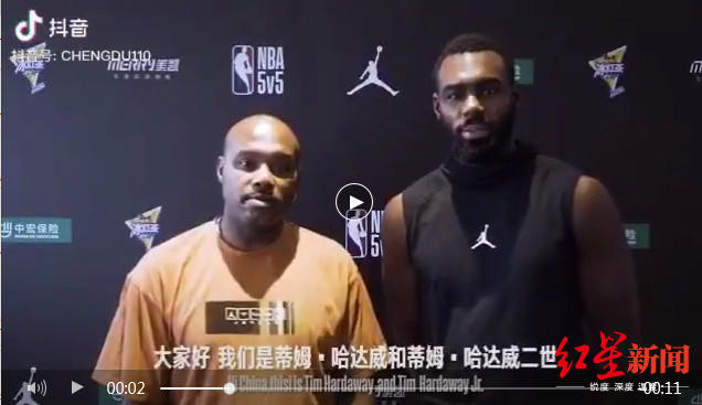 日前,NBA传奇巨星蒂姆·哈达威(Tim Hardaway),以及他的儿子——现役达拉斯独行侠队的小蒂姆·哈达威(Tim Hardaway Jr.)为今年在成都举办的世界警察和消防员运动会一起送上祝福,“2019世界警察和消防员运动会将于今年8月在成都举办。欢迎来成都,预祝活动圆满成功。”