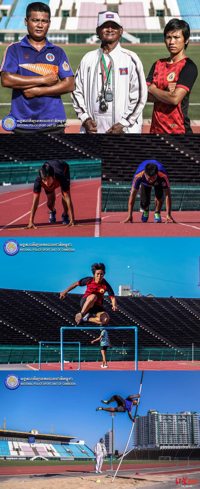 7月11日,柬埔寨世警会参赛团乒乓球队、空手道队备战世警会,队员们手握乒乓球拍,目光坚定,坚持训练。7月15日,柬埔寨世警会参赛团田径运动员备战世警会。在烈日下,柬埔寨参赛队员依然在赛场上执着训练,跑步、撑杆跳、跨栏都是他们的训练项目。
