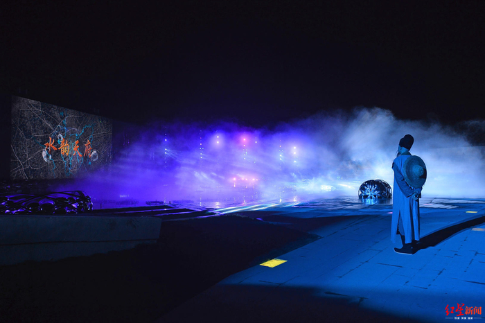 上周末,夜幕降临后,在位于成都市武侯区江安河畔的水韵天府文化旅游街区内,魔幻水舞声光秀《蜀王传奇》如期上演。