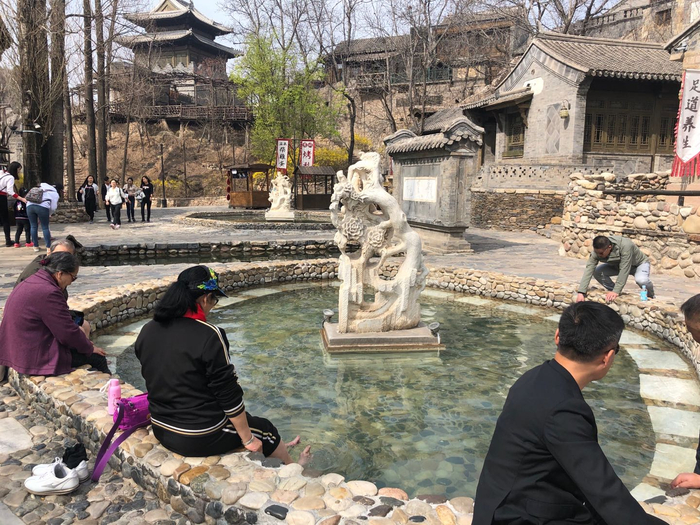 古北水镇露天的温泉池,也是游人们休憩聊天之所。