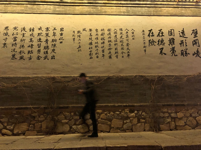 清代皇帝路过时写下的诗,被题在古北水镇的影壁上。