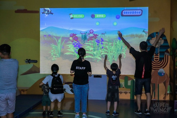 超级飞侠亲子展以温室效应引发全球生态危机为故事背景,通过任务、探索、学习、创造等环节构建完整的展览体验,呼吁每一位到场的小朋友与小飞侠们并肩作战,共同拯救热带雨林的鸟类,投身沙漠植物种植,学习垃圾分类、帮助海洋生物维护它们的家园等。