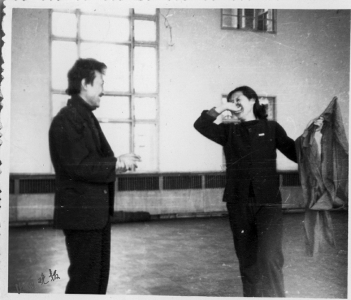 “排练中,还有许多需要跟演员配合的动作,有一次,我被一个演员从台口拖到后面去,身上划破了,裤子上渗着血。第二天,受伤的地方结了痂,照样去练习,就没觉得这是问题。”