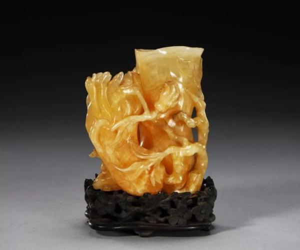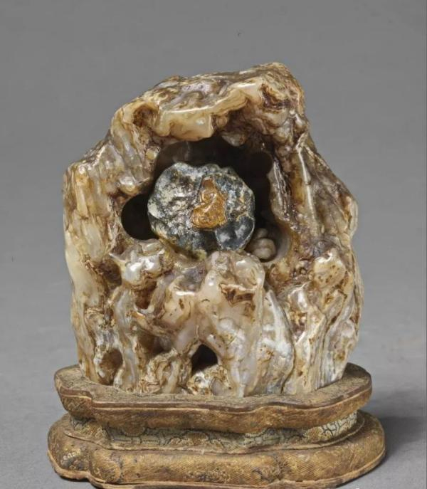 内蒙古阿拉善戈壁玛瑙在清代就已入宫,康熙、乾隆宫中均有相关记载,康熙写有《瀚海石子》一文,乾隆有《瀚海石子歌》诗一首。这方“清·玛瑙山子”,极可能是乾隆时候的旧物。