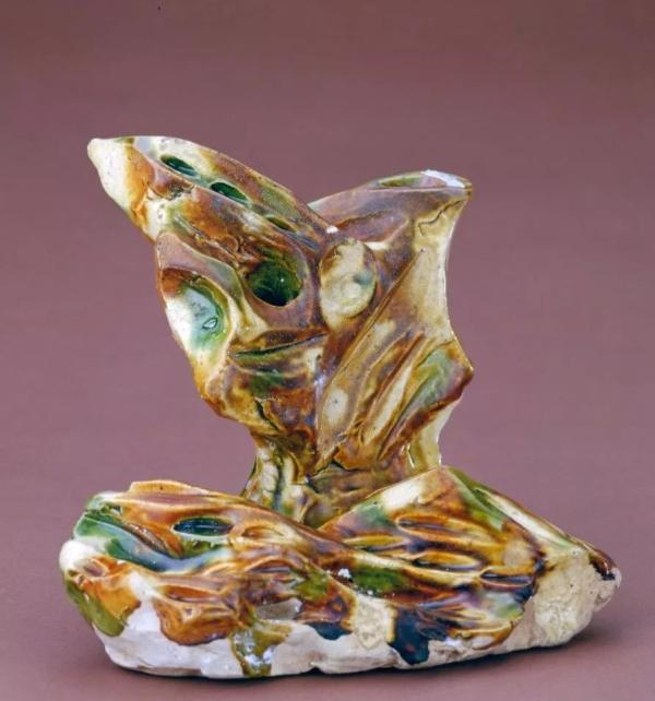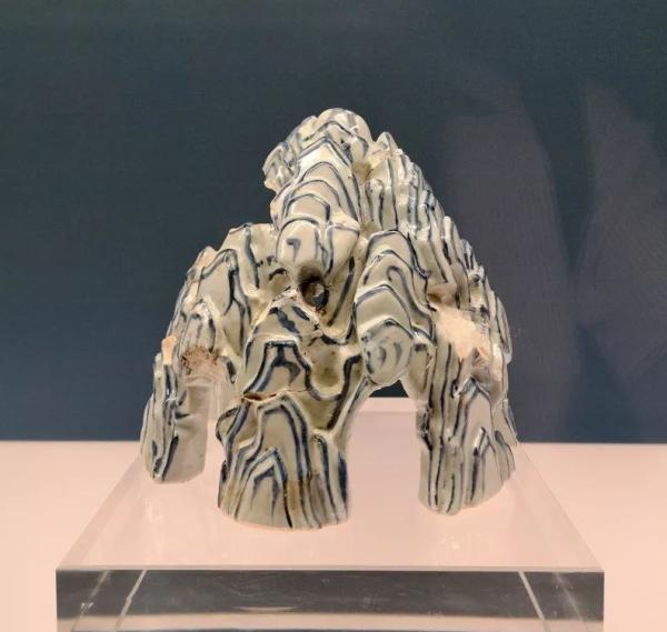 上海博物馆近期展出的“灼烁重现:十五世纪中期景德镇瓷器大展”,有一方“青花博山炉(明正统-天顺)”(景德镇市陶瓷考古研究所藏),系出土于明代景德镇御窑厂遗址,造型和肌理和此方“明嘉靖·冬青釉镂空笔山”颇为相似,应该也是属于山子类。
