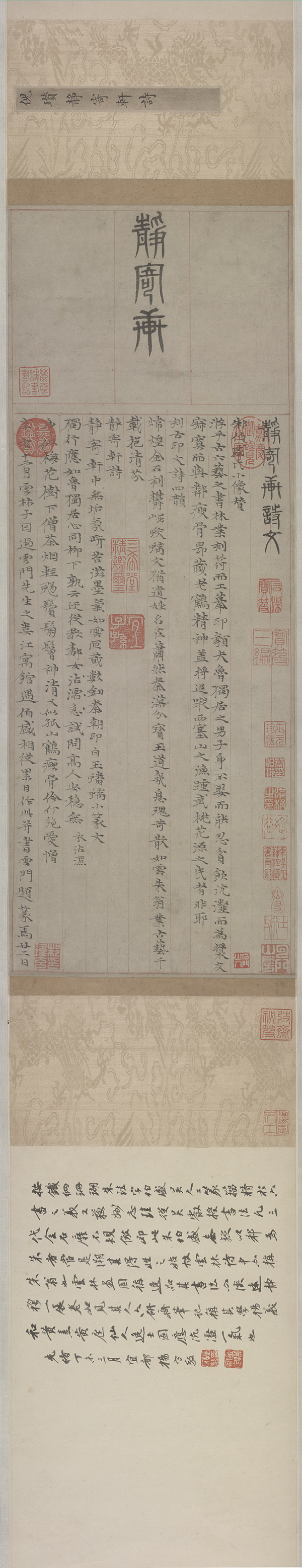 元代文人画家倪瓒的人生与书画都真正做到了“隐”和“逸”,书法既遒劲精美又率意简澹,画入“逸品”,风格萧散荒率,为中国文人山水画的代表之一。本文从倪瓒存世的书画作品以及题跋进行解析,通过倪瓒的书法艺术并借以勾连出元代的书画交流及其对后世的影响,文中涉及的绘画题跋有倪瓒的自题,对他人书画的题跋和观款,也有他人对其绘画的题跋和观款。