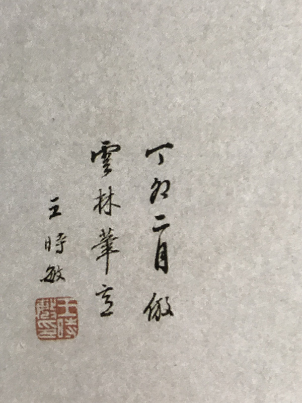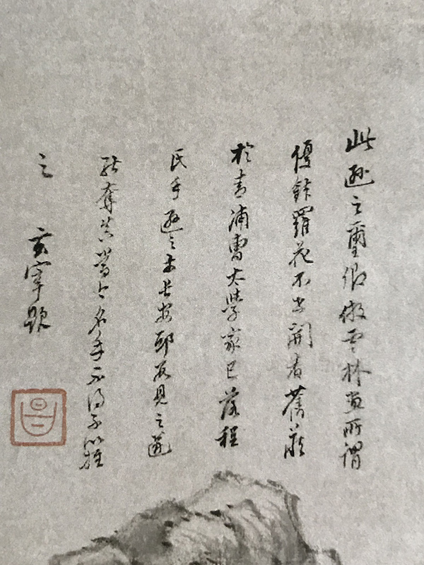 《石渠宝笈》卷八《明董其昌仿黄公望笔意一轴》陈继儒题云:“诗在大痴镜中,画在倪迂诗外。恰好二百余年,翻世出身作怪。天启四年六月,旅泊先生过访玄宰及余,眉道人、玄宰因赠此幅,乃裴旻虎,非叶公龙也。陈继儒。”