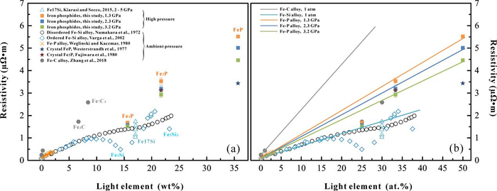 图2. 不同轻元素含量的铁合金及化合物的电阻率
