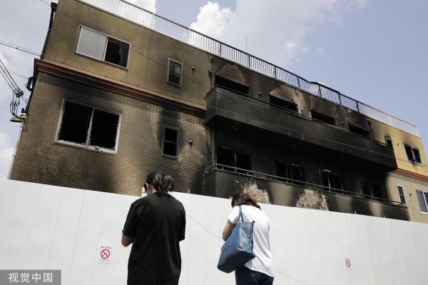 当地时间2019年7月23日,日本京都,京都动画工作室火灾现场。(视觉中国)