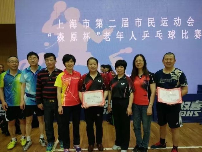 2016年,王文杰带着头桥社区三男三女组成的乒乓队球,作为全市50多支参赛团队里唯一的一支社区队,报名上海市第二届市民运动会“森源杯”老年乒乓赛。