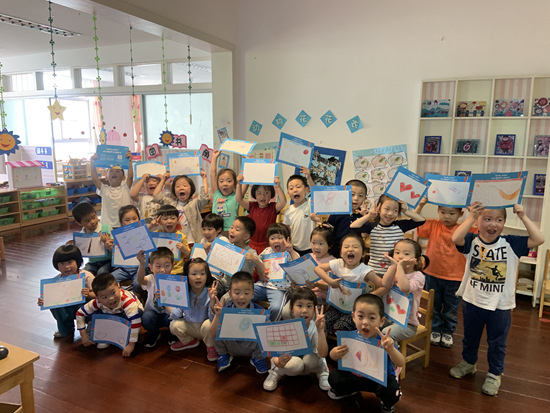 上海西门幼儿园(广厦部)小朋友展示自己的爱心画作