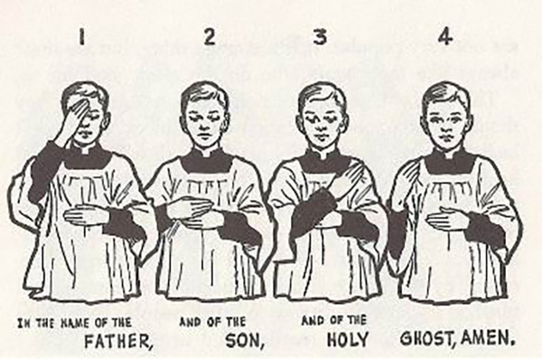 在胸前划大十字的做法,是九世纪才开始流行起来的。起先是东部说希腊语的卡尔西顿派以前额-胸口-右肩-左肩的顺序划大十字,划的时候把拇指食指中指捏到一起,表示上帝三位一体,无名指小指内拢,表示基督神人二性。据说,他们是以这种姿势将自己与一性论派区别开来。随后,西部说拉丁语的基督徒也学样开始划大十字。但是他们后来受到了本笃会(Benedictines)影响,把右手张开代表基督五伤,划十字的顺序是前额-胸口-左肩-右肩。及至十二世纪教宗英诺森三世之时,十字横向手势的顺序尚未固定下来。最后确定从左到右已经是中世纪末期的事了。而在东部教会,用几个手指划十字也经过了广泛讨论。比如,十二世纪大马士革的彼得认为,应以两指代表神人二性。直到十七世纪的《正教认信》(Confessio orthodoxa)才规定了须用三指。随后莫斯科的尼康(Patriarch Nikon of Moscow)进行改革,用三指取代了两指,还引起了旧礼仪派的强烈抗议。