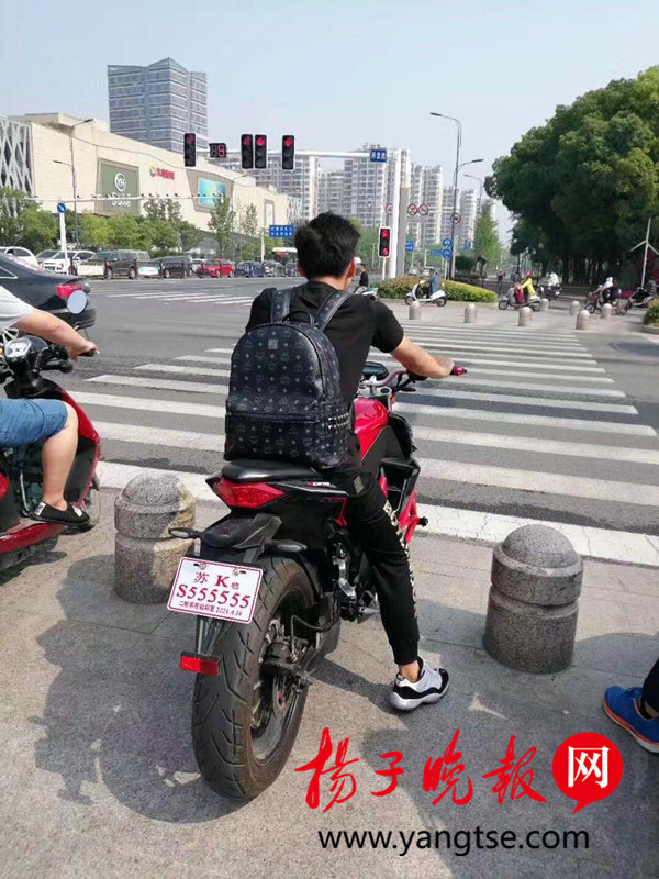 近日,扬州市交警支队二大队接到群众举报:“一辆悬挂江都S555555电动车号牌的电摩,停在扬子江路天惠数码广场上,涉嫌套牌,疑为盗抢车。”