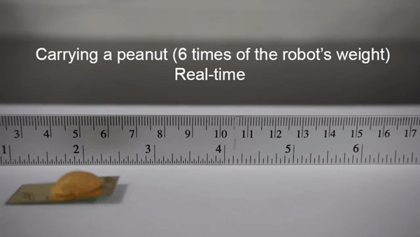 蟑螂机器人背着有自身6倍重的坚果爬行
