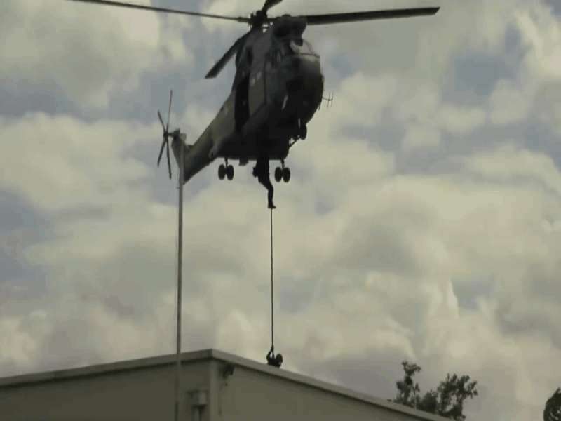 GIGN演练直升机突击及强攻车突入训练动态图。