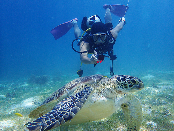 他钟情于薄荷岛,从飞机上看见这里翡翠般的大海就想一头扎进去不再出来。每次来这里都像回家一样,看朋友,聊近况。别人都问他为什么不去别的海域试试,他笑着回答,“很多人不信,我150多个气瓶都是在薄荷岛潜的,就是习惯这里了,也不会厌倦。因为即使同一个潜点,每次下水的心情不同、潜伴不同,天气、鱼都不同。我不是个‘刷点’的人,是‘慢慢来’的那种潜水员”。