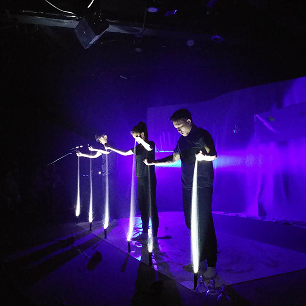 “在湖北黄石演出时,我以为观众很难接受这样抽象的表演,但居然有很多观众看哭了”,刘晓邑谈起了难忘的演出经历,“我每次演出都会站在剧场出入口和观众聊天,黄石场结束,一个阿姨不停地跟我说谢谢,说太感动了,虽然没有跌宕起伏的剧情,但她落泪了。我觉得这是艺术、剧场的力量,更是海洋的力量,被灯光、音乐和身体语言所引领,带回到海底,就像孩子最初在子宫里的漂浮感。我们需要把心柔软的一面重新发现,把心和天地链接起来,这种古老的仪式感似乎已经消失了”。