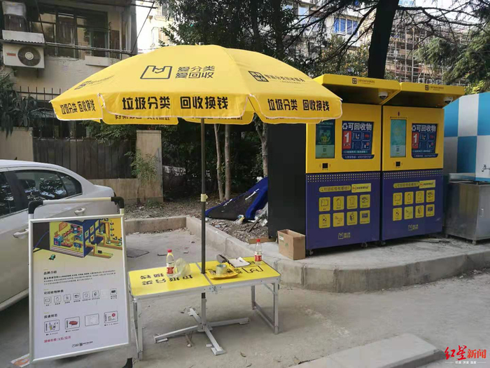 爱回收工作人员告诉红星新闻记者,公司正以互联网方式做垃圾分类与再生资源回收,这是上海市政府垃圾分类网和再生资源回收网“两网融合”的项目。爱回收已在上海多个小区、学校、园区试点投放可回收垃圾收纳箱,目前该项目尚处于试运行阶段。