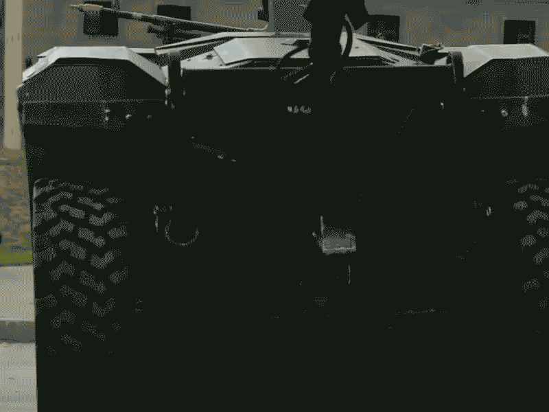 “猎人狼”无人战车搭载30毫米链式机关炮打靶动态图。