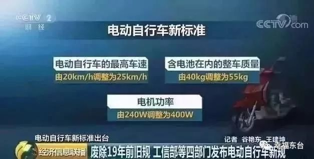 其中,电动车新国标规定:电动车最高时速不得超过25km/h整车质量(含电池)禁超55kg须有脚踏骑行能力电机功率不超过400W蓄电池标称电压不超过48伏不能随意改装车辆外观!如果你的电动车不符合如上规定那么就属于超标车了