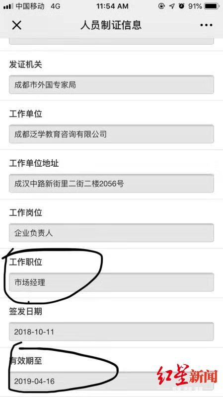 半年后,他的工资被拖欠,在维权的过程中,他才发现,工作许可证的单位为成都泛学教育咨询有限公司(以下简称泛学公司),职务为市场经理,并不是他所从事的英语外教。
