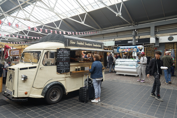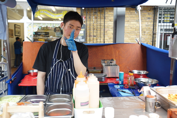 它现在依然是一个充满当地风味的传统市集的模样,每天有不同的主题,比如手工集市、古董集市或是美食集市,巧了,作为吃货的我去的那天正好遇上美食集市,摊位主人都在当地生活,但他们来自各式各样的背景,也作出各式各样的美食。一位做超美味韩式炸鸡的韩国小哥晚上在夜店做DJ;集市门口做现炸西班牙油条(Churros)配肉桂巧克力酱的巴西姑娘在格林尼治念书,她的午饭就在其他摊位解决,还可以用学生卡;一个摊位上的香肠卷被我的旅伴评为世界上最好吃的香肠卷,一问才知,虽然香肠卷是英式小吃,但这位制作者却是一位法国移民,难怪了!