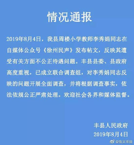 原标题:发布绝笔信徐州教师夫妇已安全找到,丰县对反映问题开展全面调查