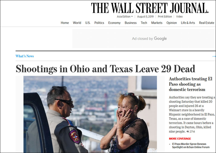 两起案件都骇人听闻,一名枪手在1分钟内杀死9人,其中包括自己的妹妹;另一名枪手提前在8chan论坛发布长达四页的网络宣言,表达对此前造成51人死亡的新西兰基督城枪击案的支持。