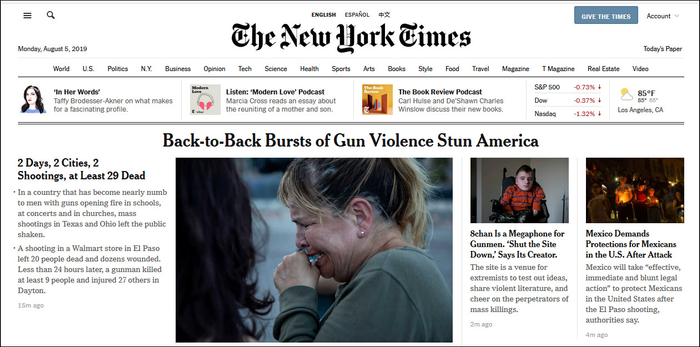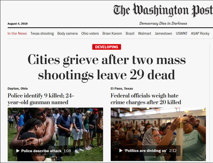 “这是美国致命的一天”,“城市陷入悲痛当中”……大规模枪支暴力的阴影4日再次占据各大美媒的头条。