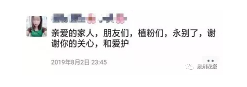 当晚11点45分,感觉事情不妙的时某,发了最后一条朋友圈,和家人朋友“永别了,谢谢你们的爱护”。