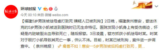 原标题:福建5岁男孩被继母虐打致死 嫌疑人已被刑拘