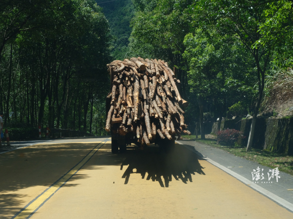 2019年7月18日,钱江源源头景区,一辆货车拉着木材驶向外界。