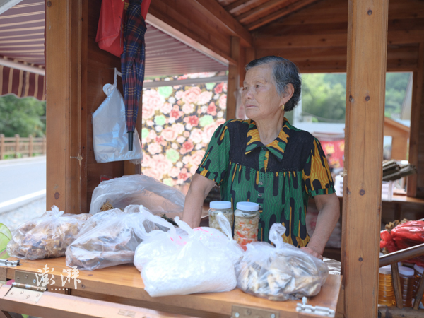 2019年7月18日,钱江源源头景区,76岁的村民赖女士在等待游客来购买旅游纪念品、当地土特产。据称未来政府计划收取每年5000元的摊位费,但她去年全年收入仅有2000多元。