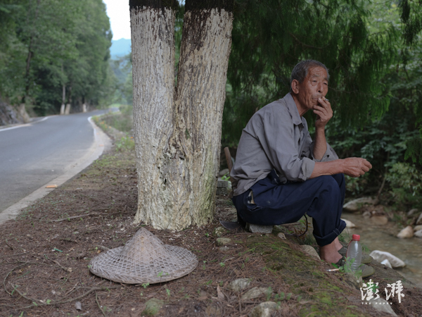 2019年7月,钱江源西侧接近江西省的河滩村,一位年老的村民在廊桥上休息。