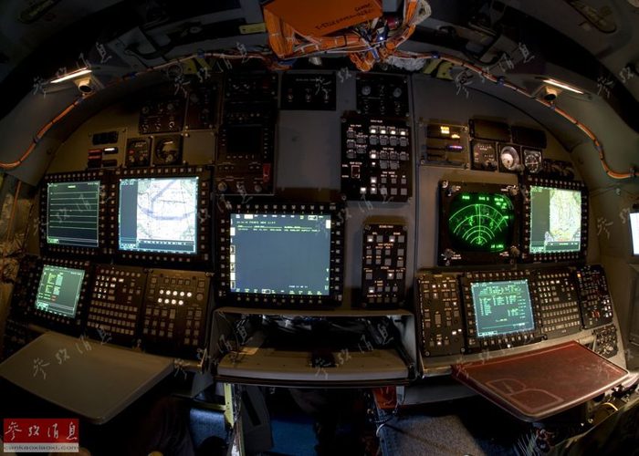 图为B-1B的后部座舱, 左侧为防御系统军官(DSO)工作站,负责B-1B的电子战系统以及自卫措施,右侧为进攻系统军官(OSO)席,负责B-1B的武器系统以及投弹等操作。仪表布置以多块多功能显示器为主。