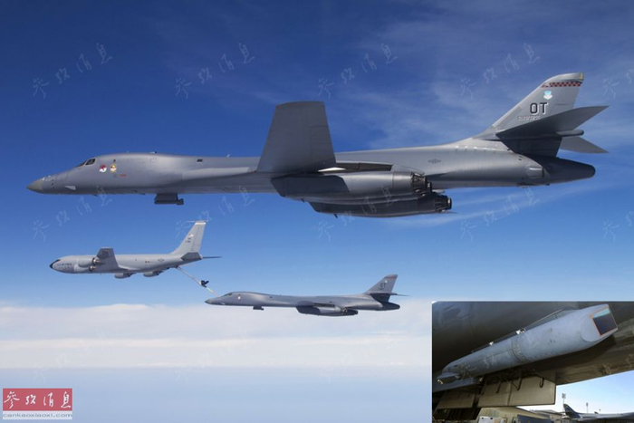 图为B-1B投射AGM-158 JASSM隐身巡航导弹。