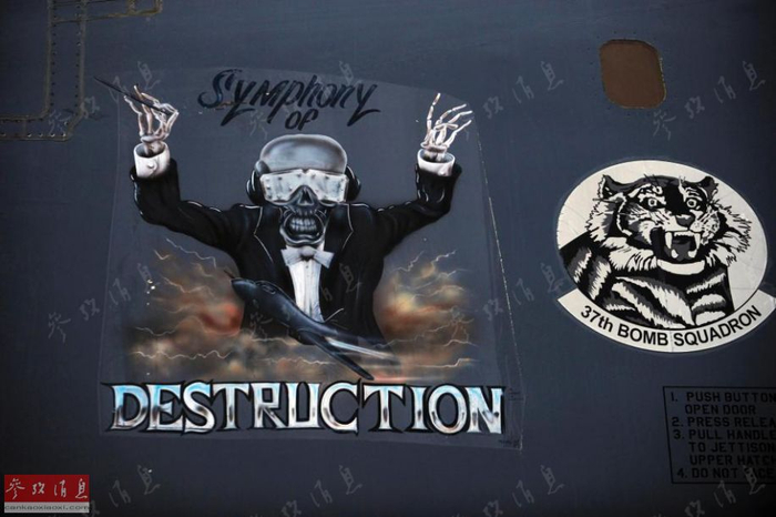 最后来谈下B-1B的绰号。美军于1990 年 3 月 1 日为B-1B所起的绰号是”枪骑兵“(Lancer),但B-1B机组人员更习惯称其为”骨头“(Bone),其实就是B-1英文读法的合成读法(B-ONE),刚好就是图中的B-1B机身涂鸦图案。