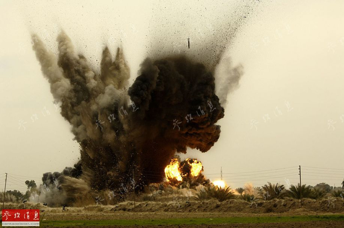 图为2010年10月,在美军TACP控制员的协调下,一架B-1B轰炸机向伊拉克Zambraniyah省北部的一个武装据点连续投掷了6枚GBU-38卫星制导“小直径炸弹”,将其彻底摧毁。