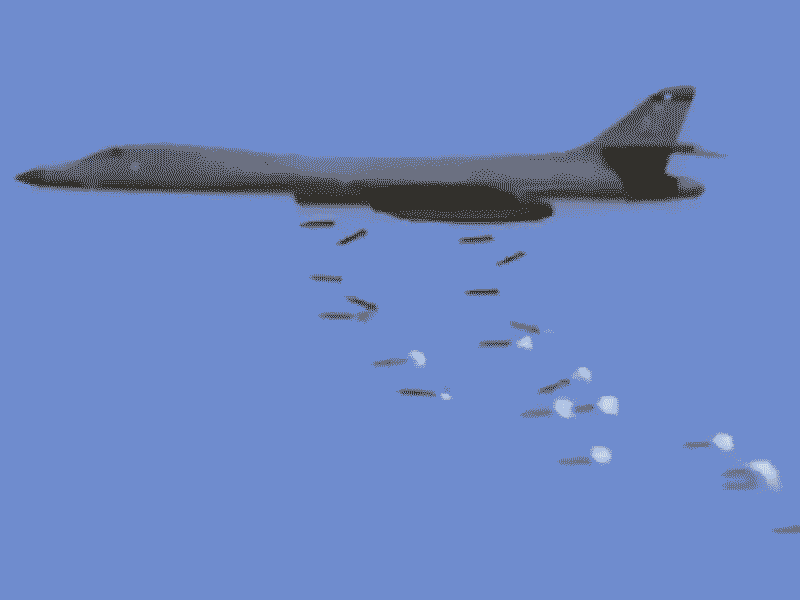 B-1B连续投放多枚JDAM卫星制导炸弹动态图。